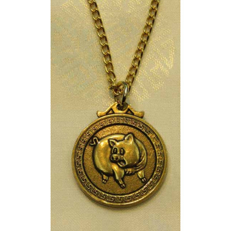 One side is Chinese zodiac sign, The BOAR(PIG). The other side is a Chinese character "FU"(GOOD FORTUNR). A list of Chinese zodiac sign from 1924-2063 included.