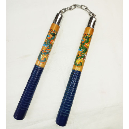 WOOD NUNCHAKU WITH COLORS DRAGON 12"