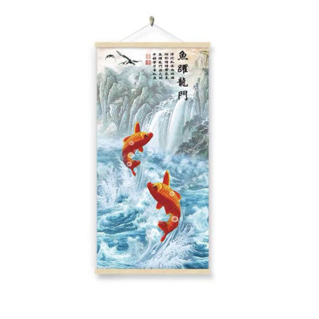 WALL SCROLL TWO FISHES LEAPING OVER THE DRAGON GATE 17.7"x12"